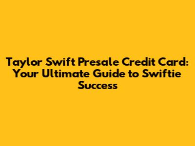Taylor Swift Presale Credit Card: Your Ultimate Guide